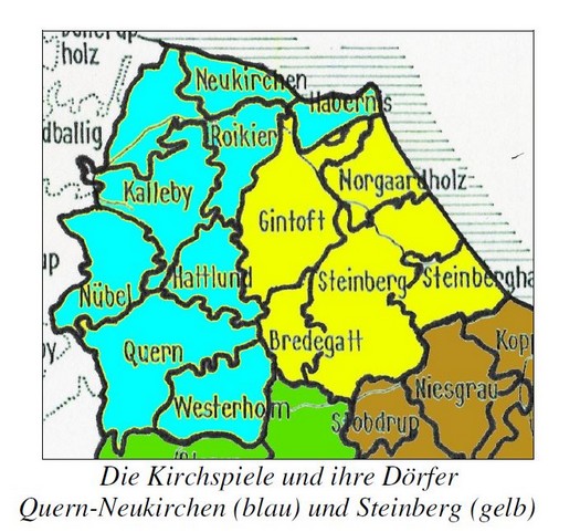 Das Kirchspiel Quern-Neukirchen umfaßt die folgenden Ortsbezeichnungen: